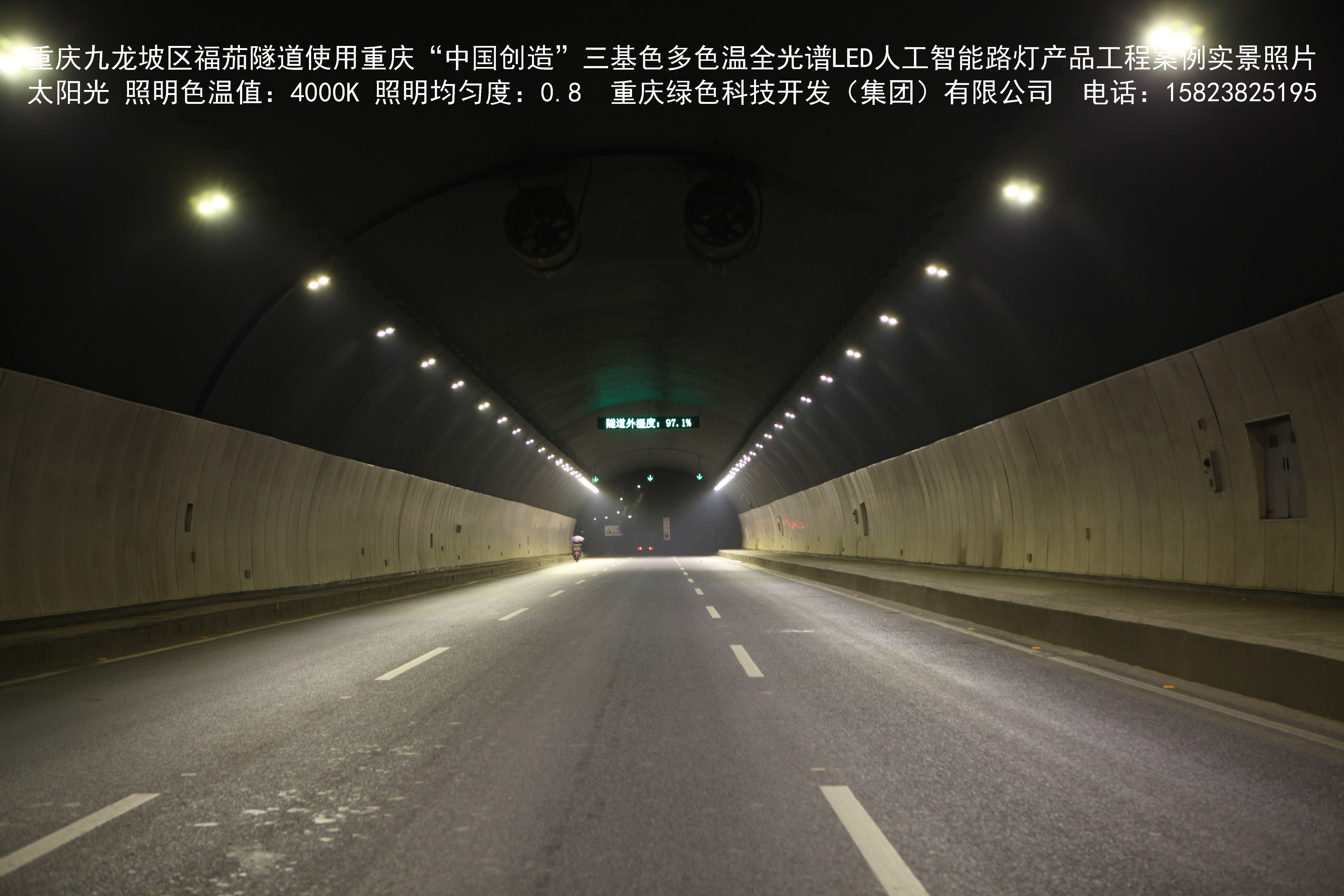 2018年9月,重庆市九龙坡区城市管理局使用我司自主研发制造的重庆“中国创造”三基色多色温全光谱LED人工智能隧道灯系列产品,实施了市政设施品质提升工程。该工程已全面竣工。工程实施后,极大地提高了城市照明清晰度、灯光均匀度、舒适度。通过智能终端实现单灯感知、线缆防盗报警,与原高压钠灯相比,节能率60%以上,有效解决了关闭控制回路或间隔关灯方式造成的照明暗区,确保行人和车辆通行的安全,实现城市路灯照明系统的智能化管理,推进了智慧城市建设。