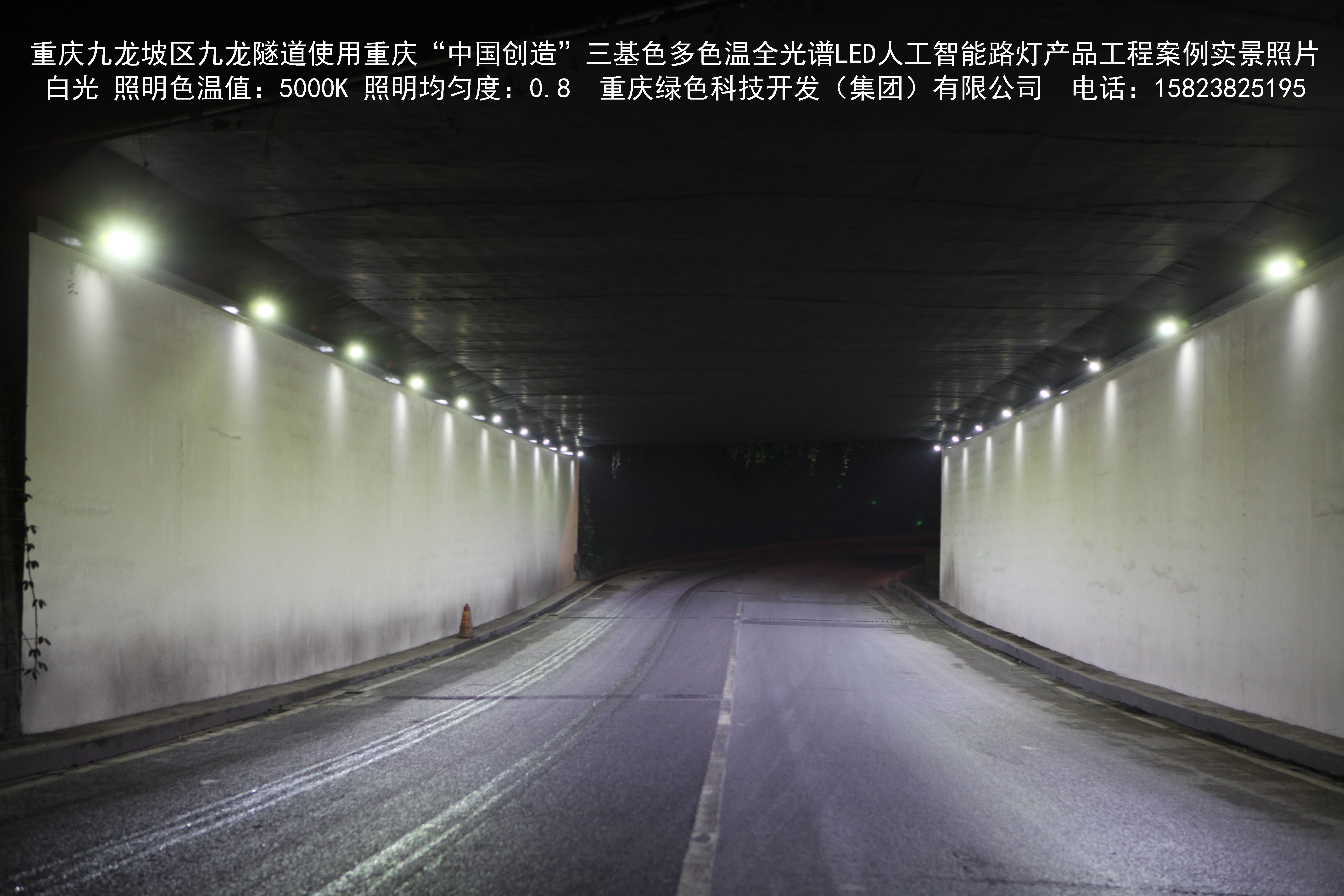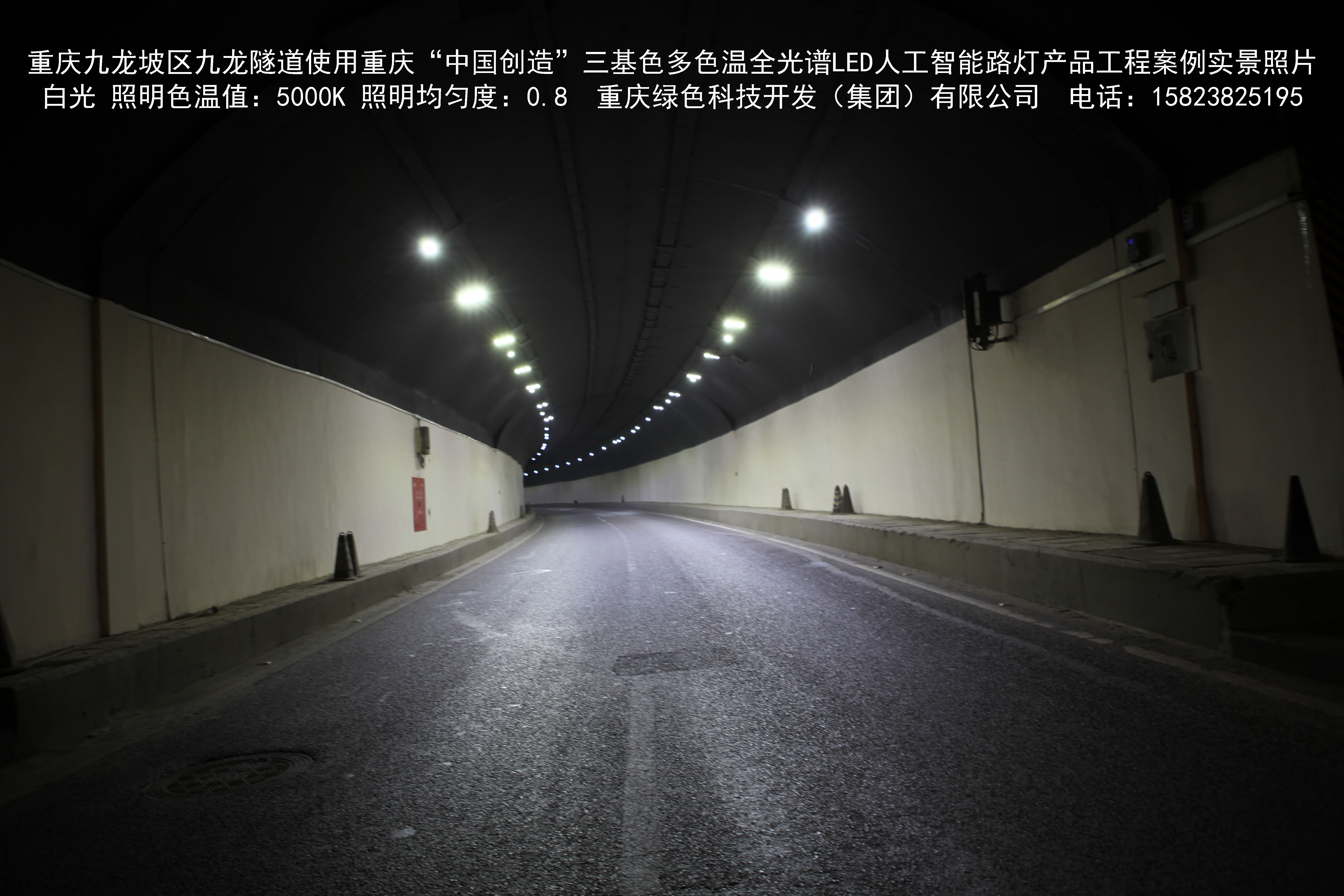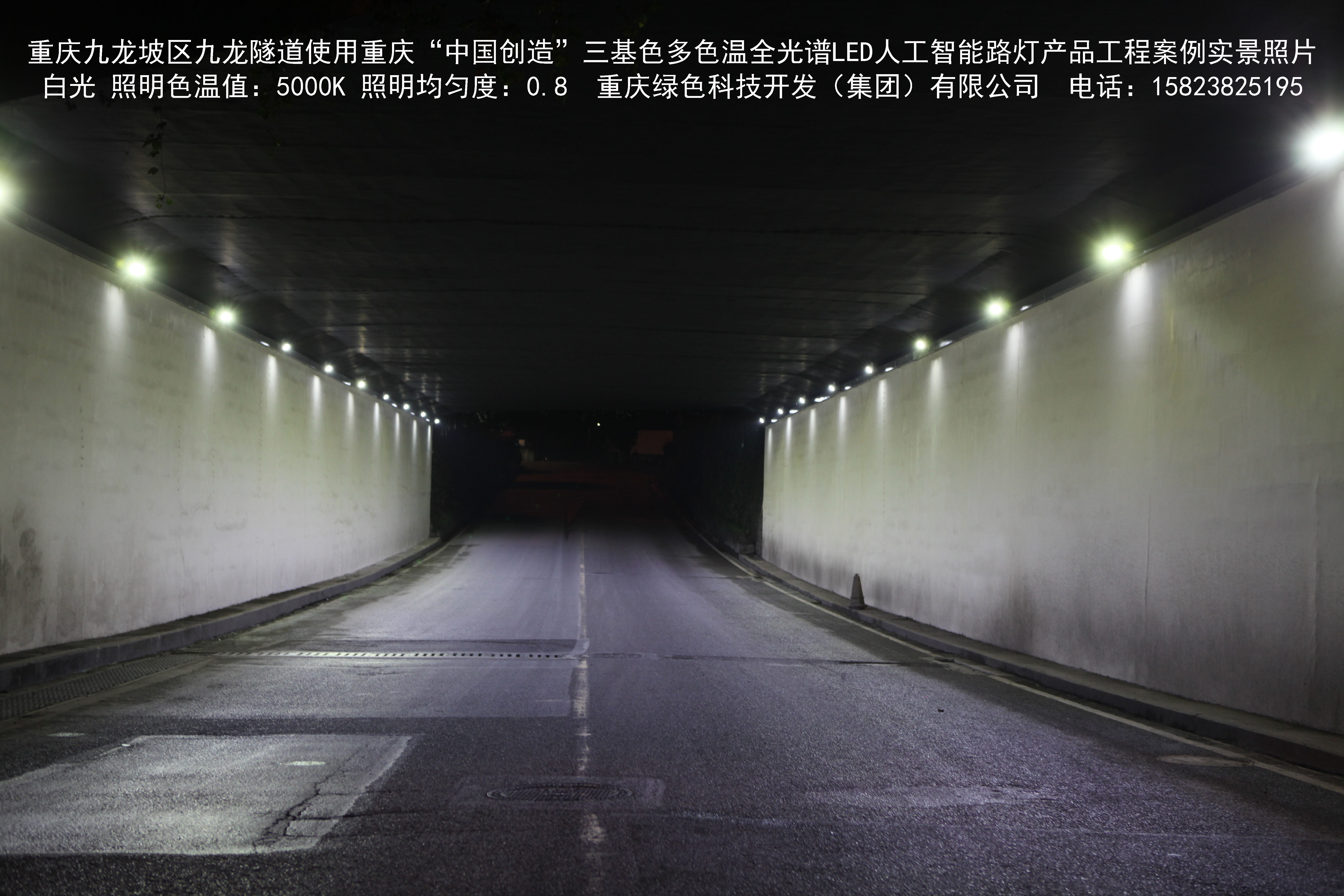 2018年9月,重庆市九龙坡区城市管理局使用我司自主研发制造的重庆“中国创造”三基色多色温全光谱LED人工智能隧道灯系列产品,实施了九龙隧道市政设施品质提升工程。该工程已全面竣工。工程实施后,极大地提高了城市照明清晰度、灯光均匀度、舒适度。通过智能终端实现单灯感知、线缆防盗报警,与原高压钠灯相比,节能率60%以上,有效解决了关闭控制回路或间隔关灯方式造成的照明暗区,确保行人和车辆通行的安全,实现城市路灯照明系统的智能化管理,推进了智慧城市建设。