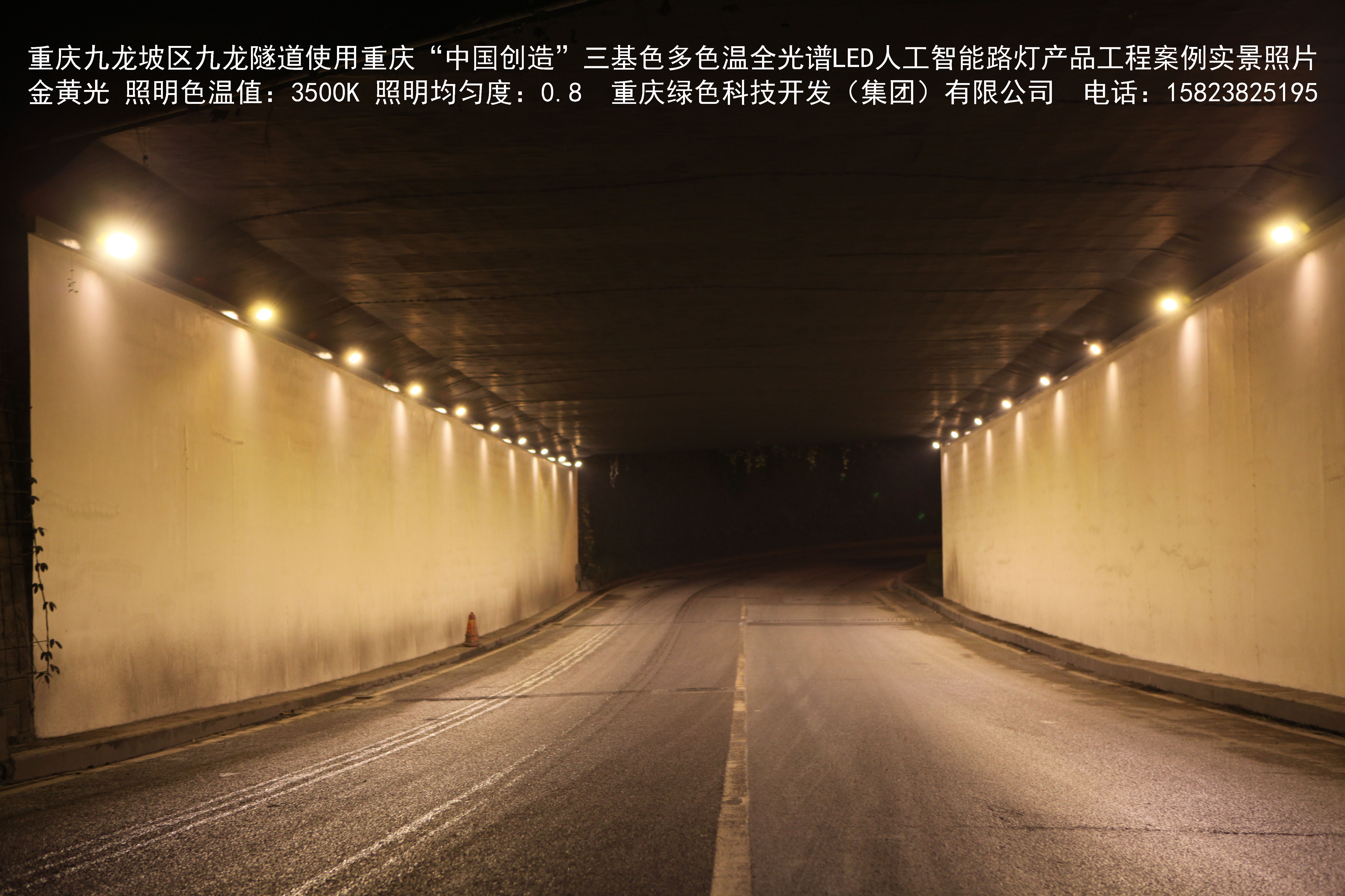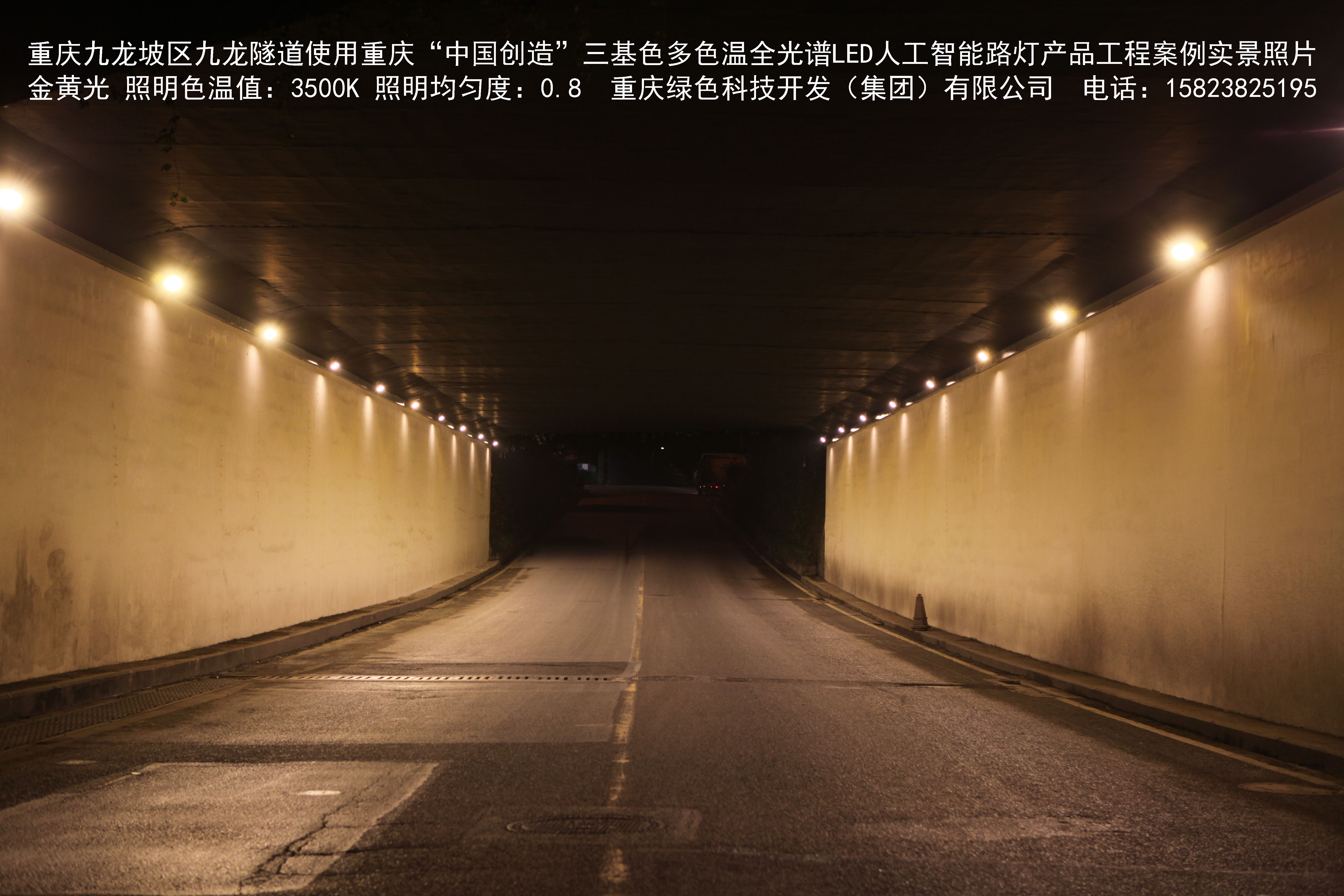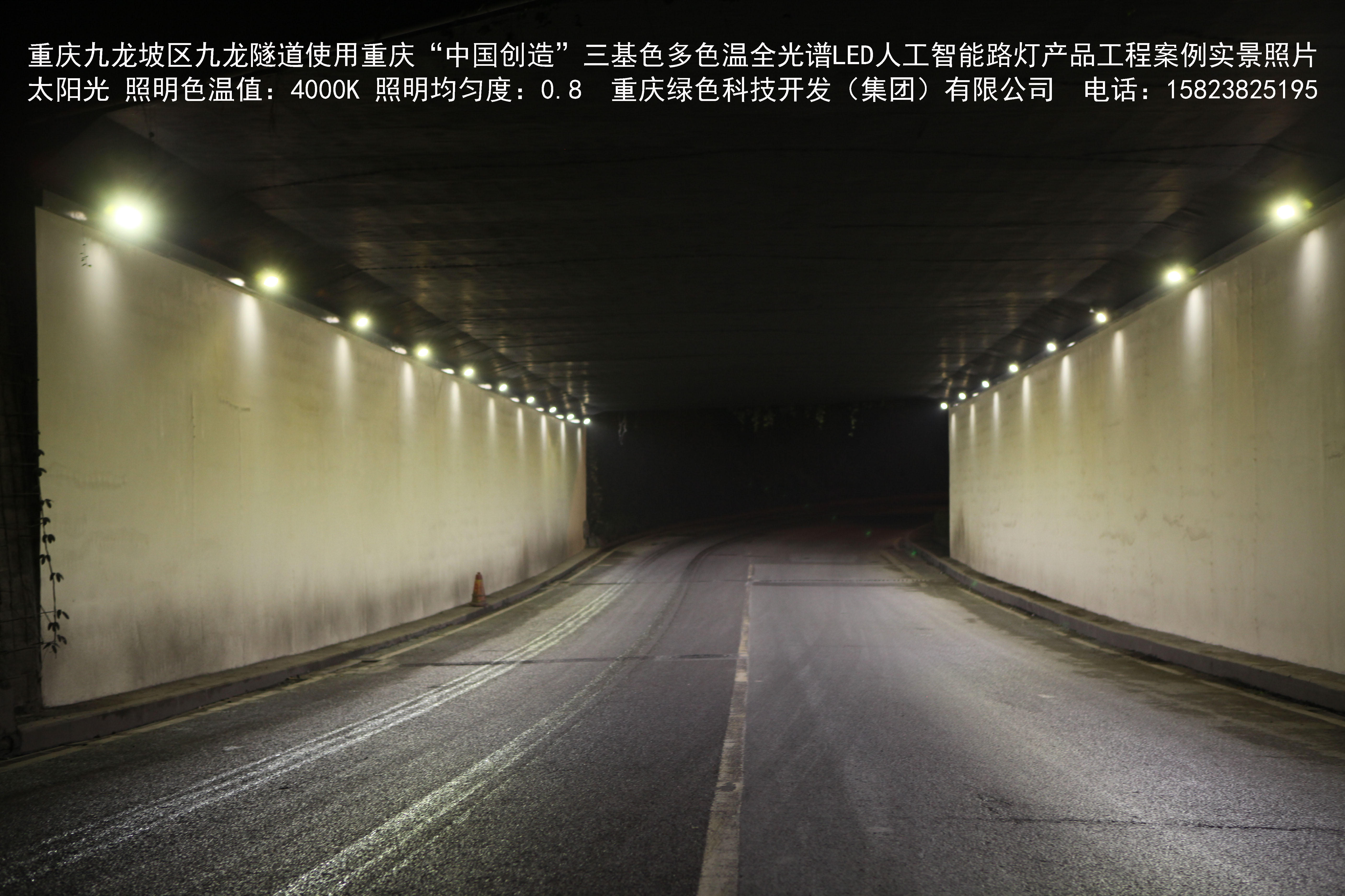2018年9月,重庆市九龙坡区城市管理局使用我司自主研发制造的重庆“中国创造”三基色多色温全光谱LED人工智能隧道灯系列产品,实施了九龙隧道市政设施品质提升工程。该工程已全面竣工。工程实施后,极大地提高了城市照明清晰度、灯光均匀度、舒适度。通过智能终端实现单灯感知、线缆防盗报警,与原高压钠灯相比,节能率60%以上,有效解决了关闭控制回路或间隔关灯方式造成的照明暗区,确保行人和车辆通行的安全,实现城市路灯照明系统的智能化管理,推进了智慧城市建设。