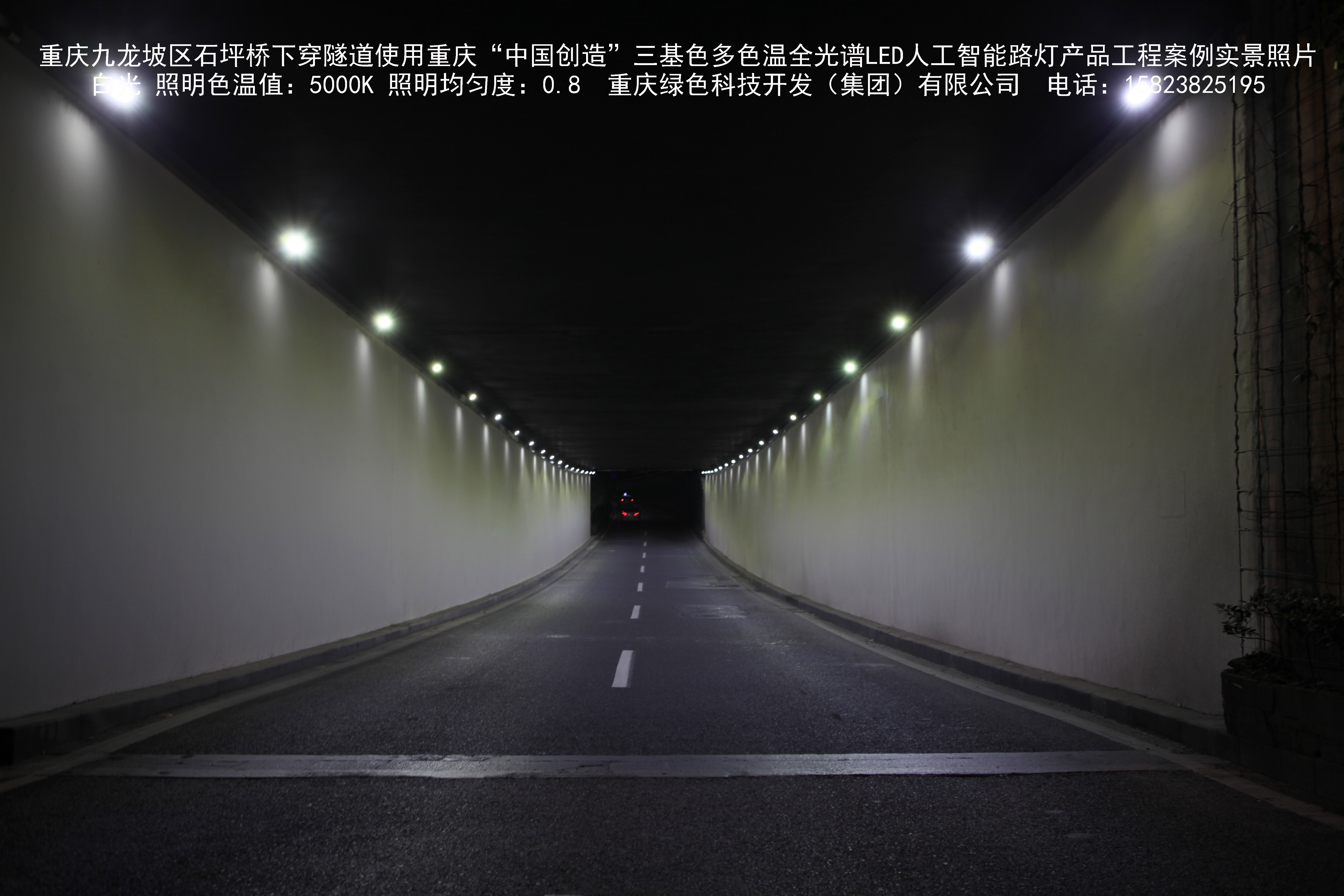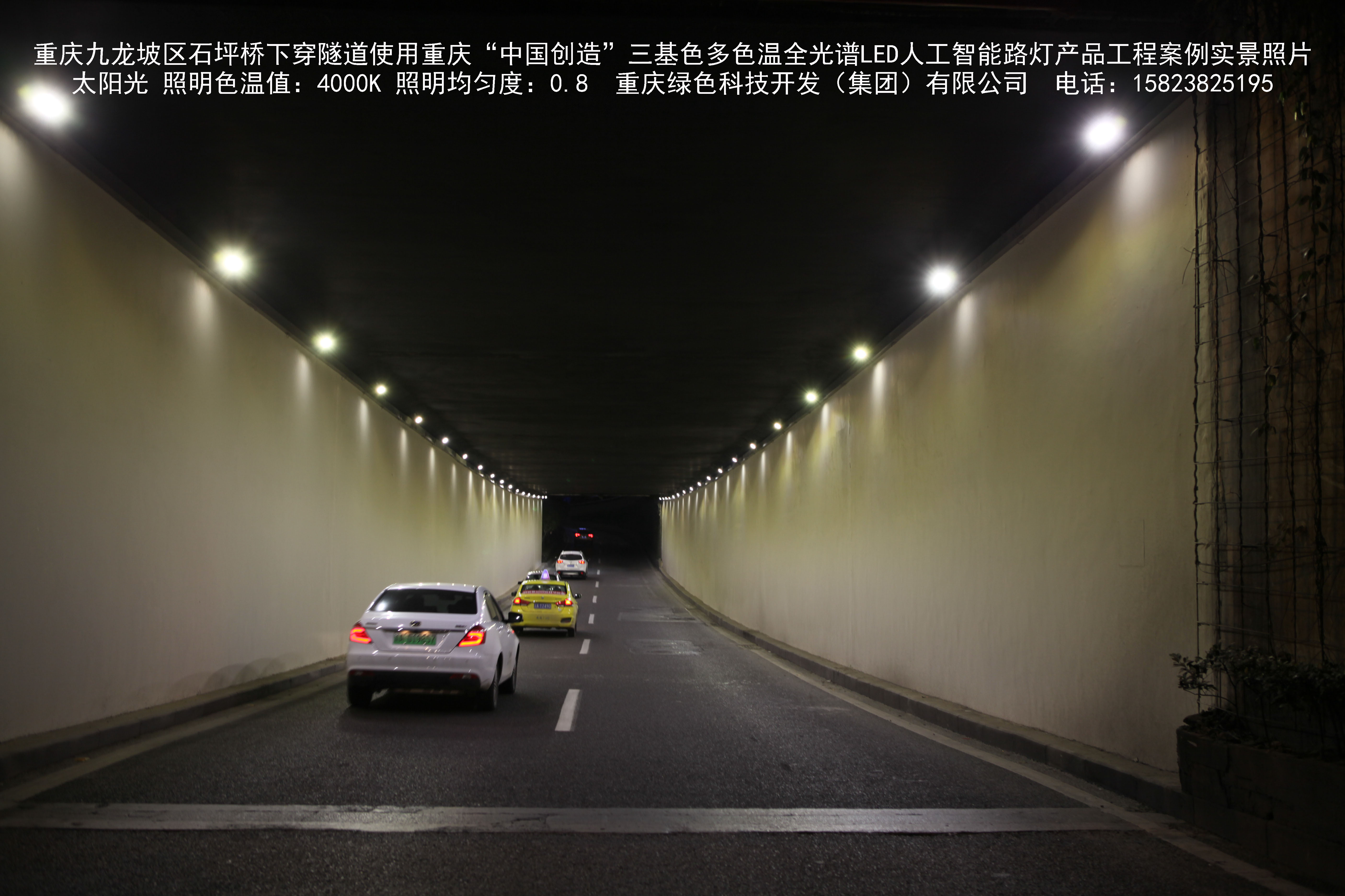 2018年9月,重庆市九龙坡区城市管理局使用我司自主研发制造的重庆“中国创造”三基色多色温全光谱LED人工智能隧道灯系列产品,实施了石坪桥下穿隧道市政设施品质提升工程。该工程已全面竣工。工程实施后,极大地提高了城市照明清晰度、灯光均匀度、舒适度。通过智能终端实现单灯感知、线缆防盗报警,与原高压钠灯相比,节能率60%以上,有效解决了关闭控制回路或间隔关灯方式造成的照明暗区,确保行人和车辆通行的安全,实现城市路灯照明系统的智能化管理,推进了智慧城市建设。