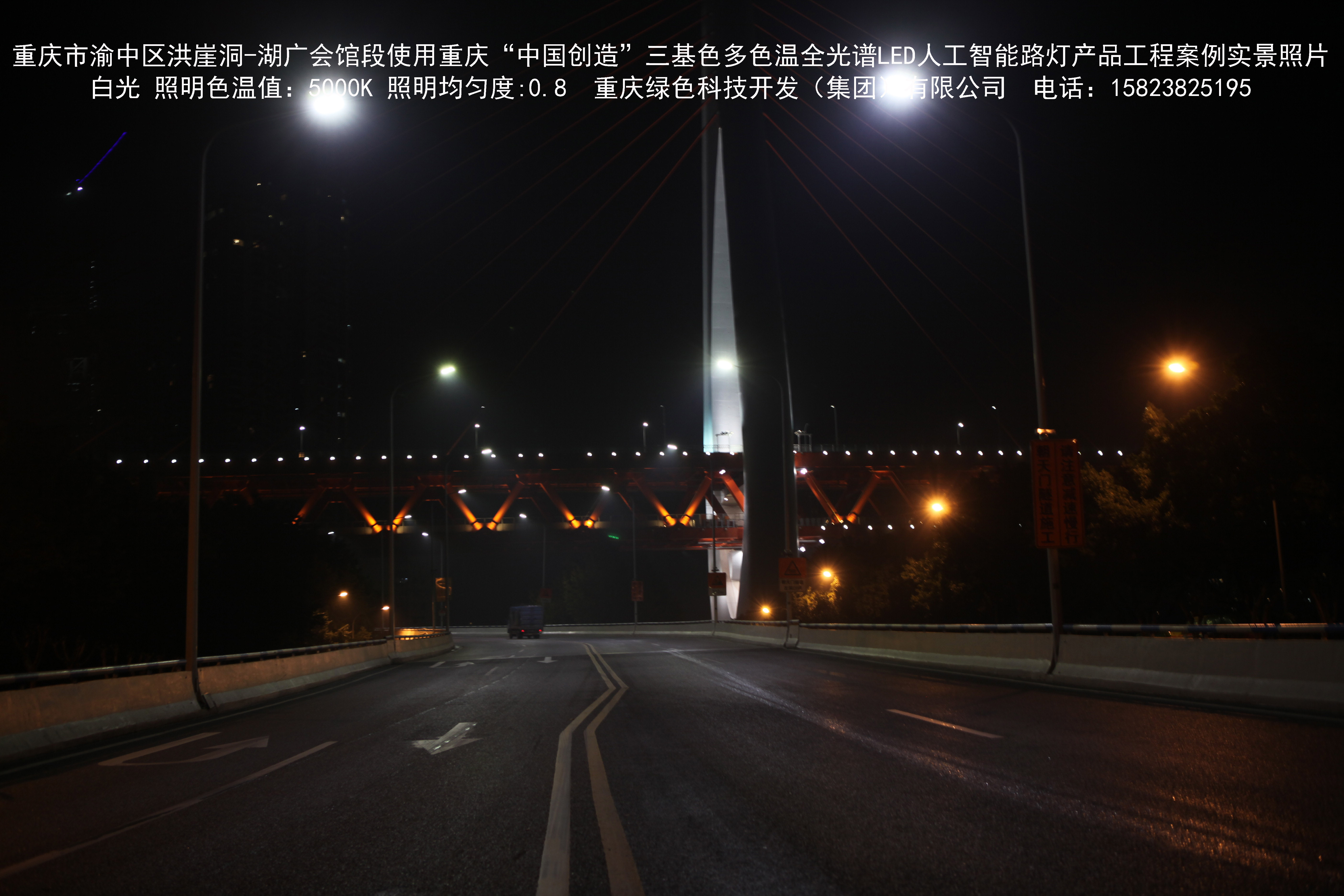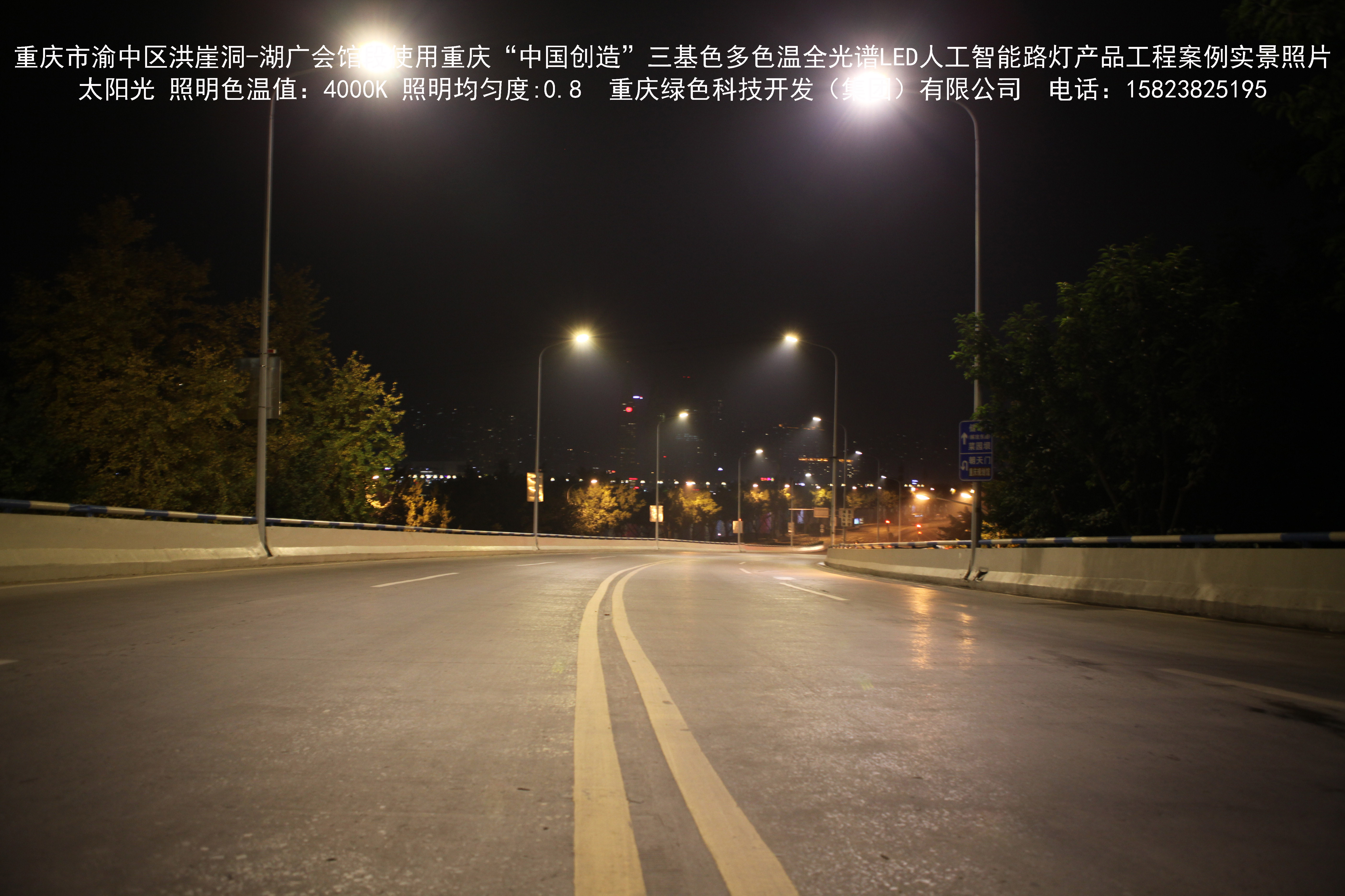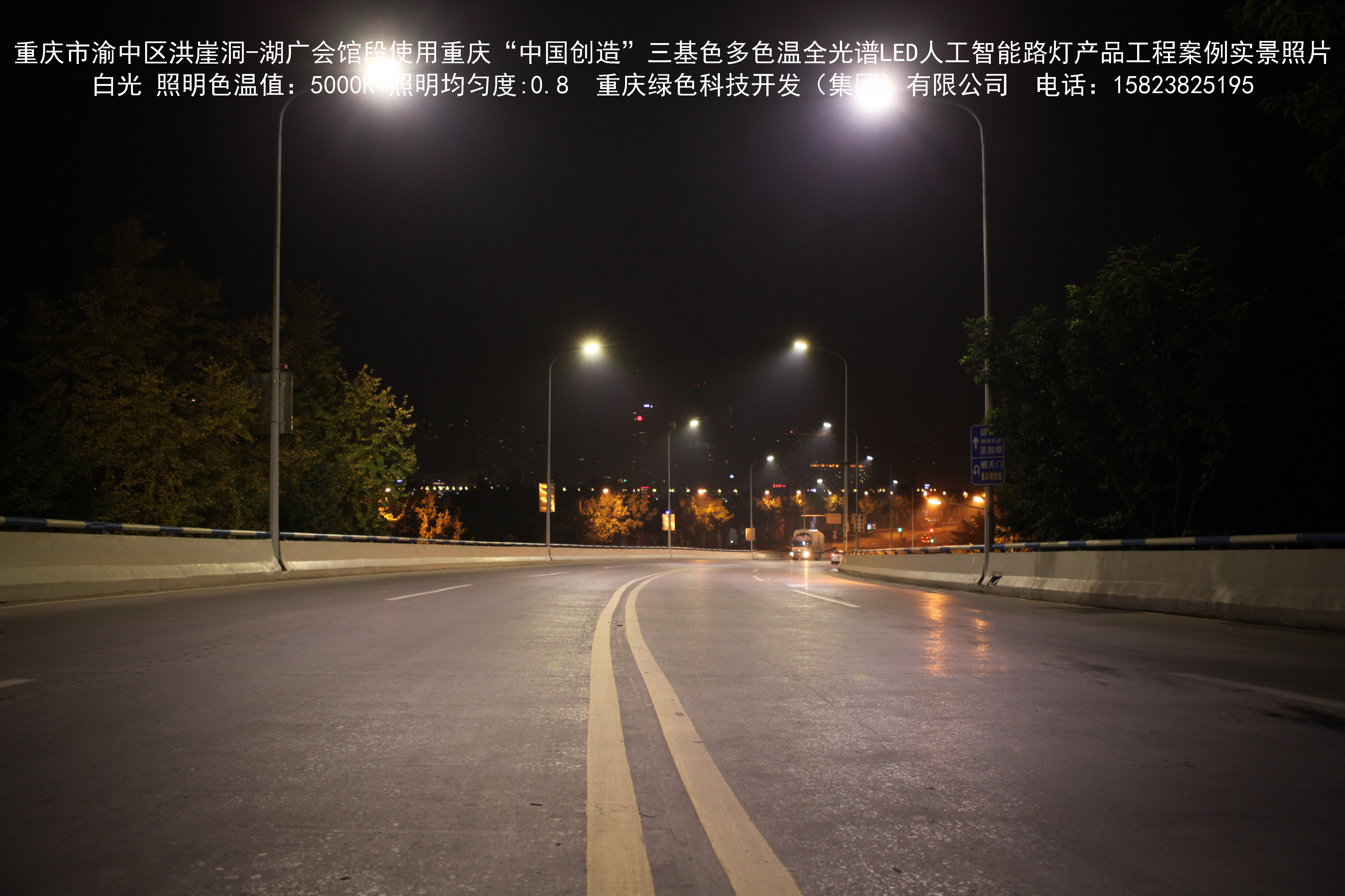 2018年12月,重庆市城市照明管理局使用我司自主研发制造的重庆“中国创造”三基色多色温全光谱LED人工智能路灯系列产品,实施了渝中区市政设施品质提升工程。该工程已全面竣工。工程实施后,极大地提高了城市照明清晰度、灯光均匀度、舒适度。通过智能终端实现单灯感知、线缆防盗报警,与原高压钠灯相比,节能率60%以上,有效解决了关闭控制回路或间隔关灯方式造成的照明暗区,确保行人和车辆通行的安全,实现城市路灯照明系统的智能化管理,推进了智慧城市建设。