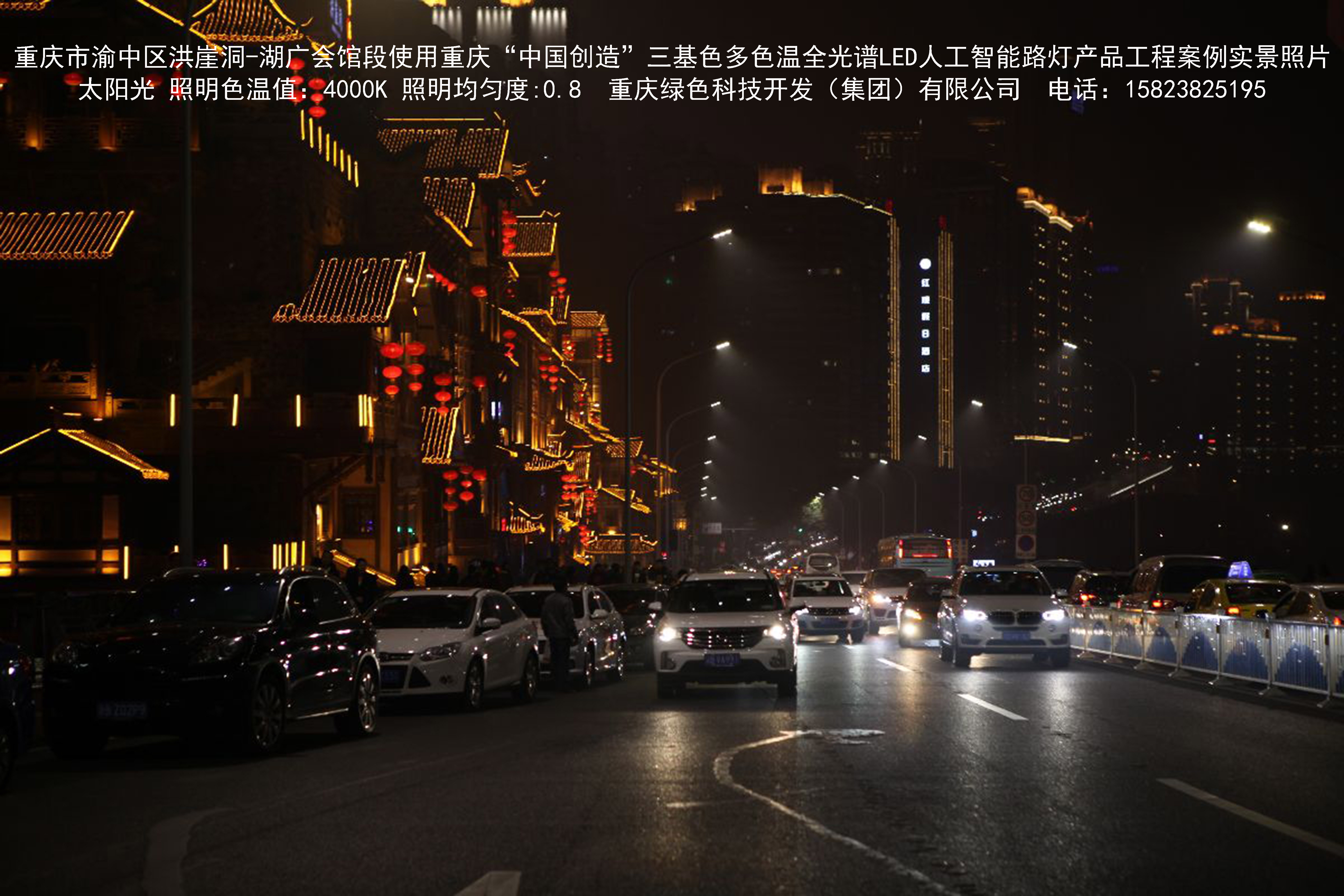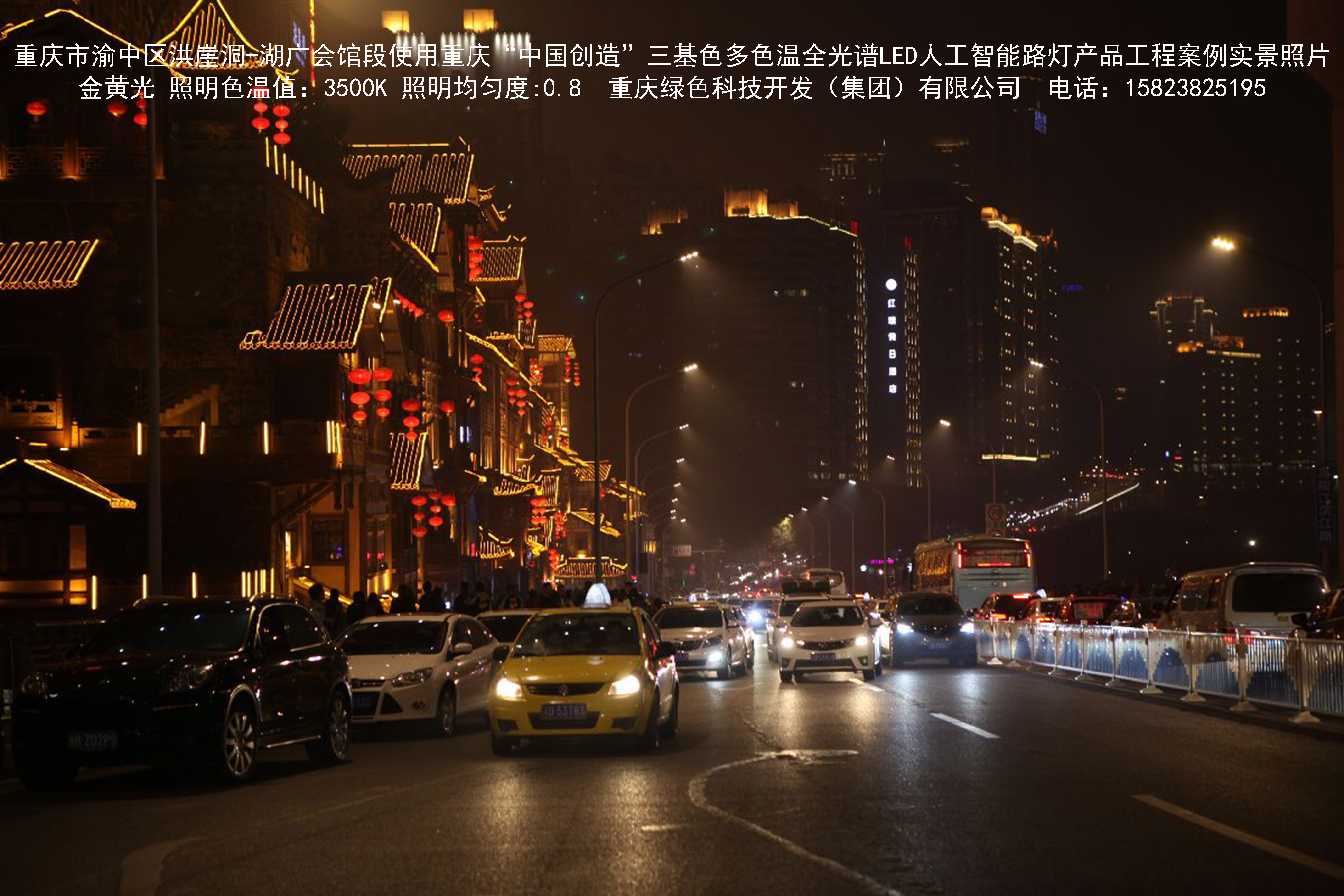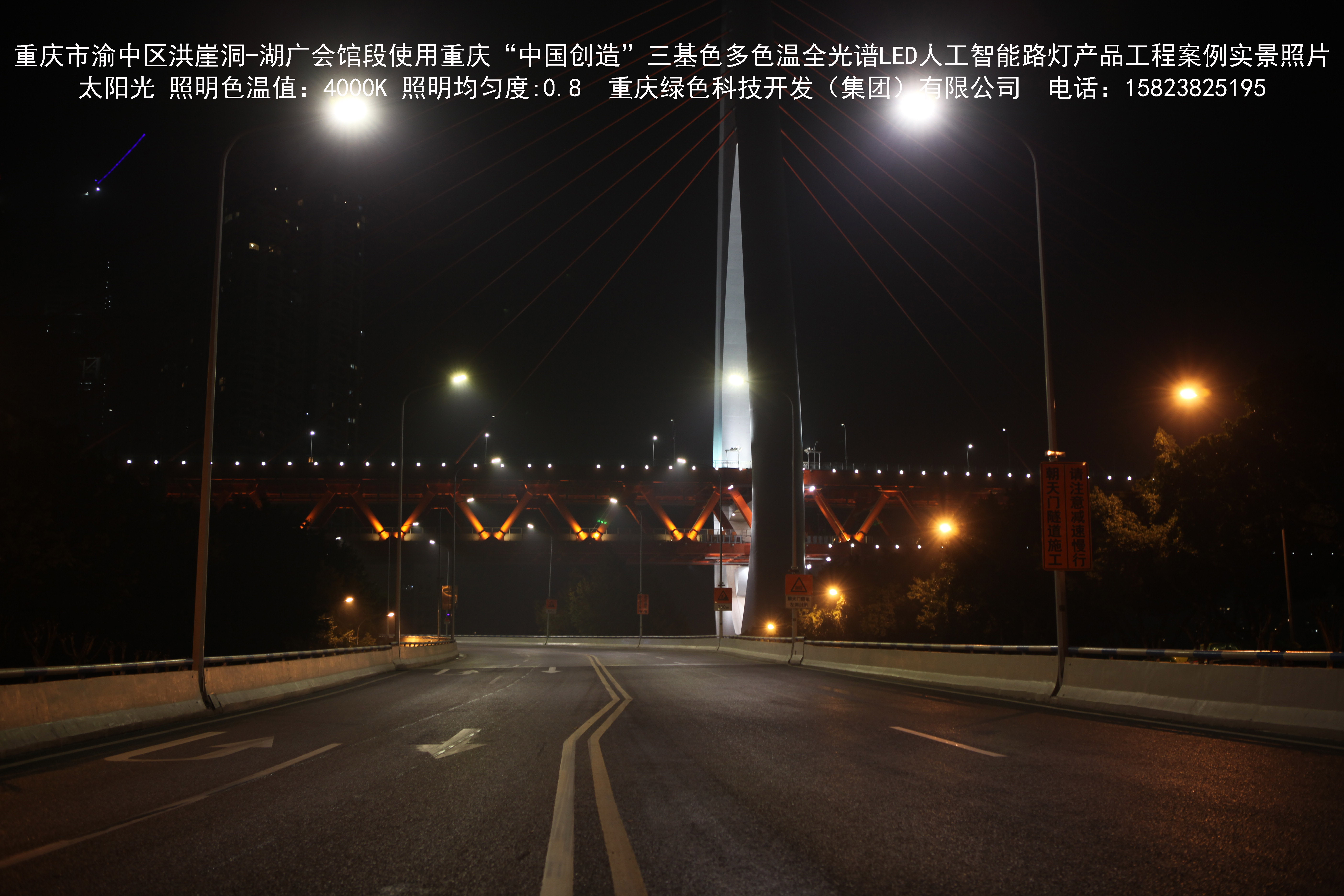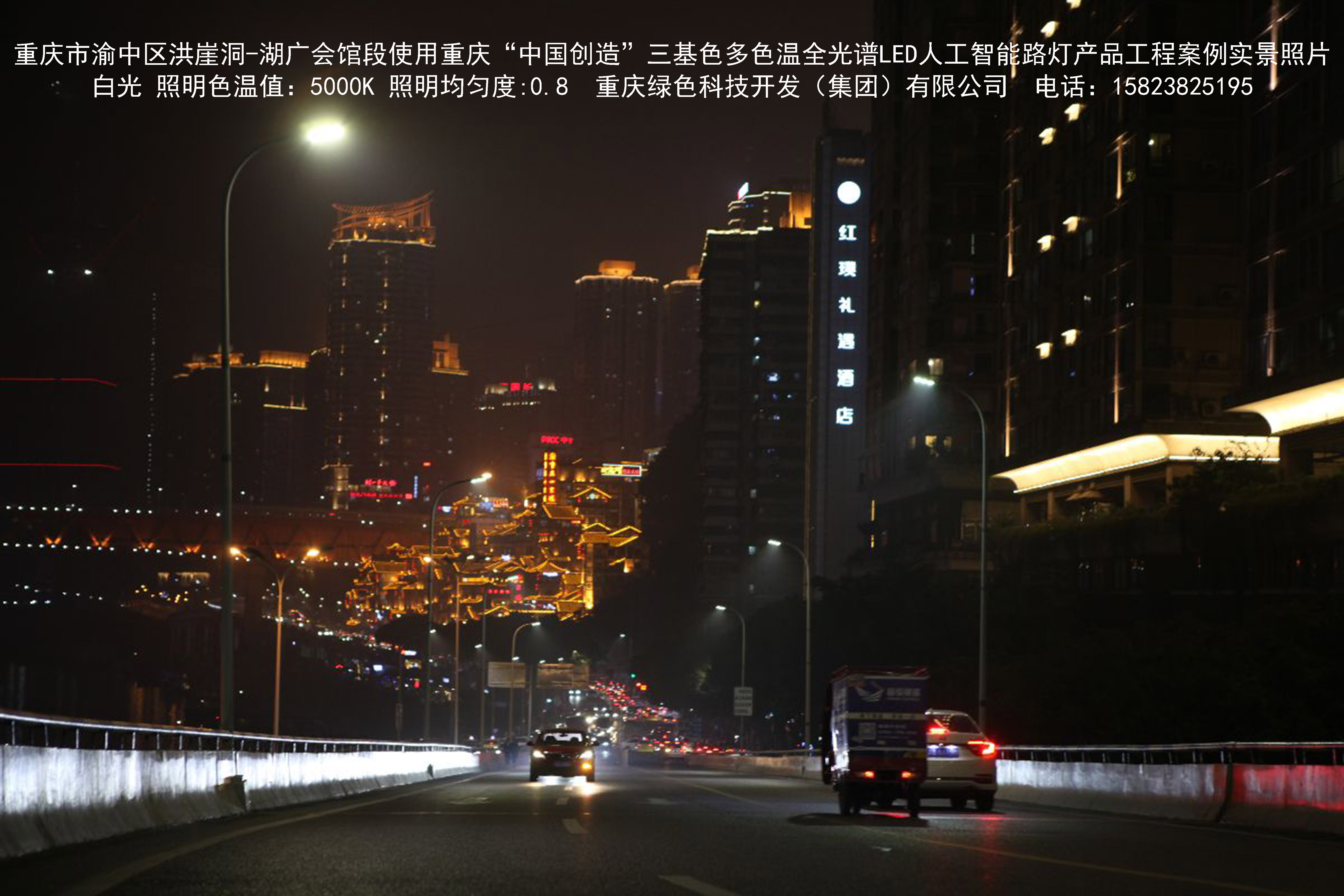 2018年12月,重庆市城市照明管理局使用我司自主研发制造的重庆“中国创造”三基色多色温全光谱LED人工智能路灯系列产品,实施了渝中区市政设施品质提升工程。该工程已全面竣工。工程实施后,极大地提高了城市照明清晰度、灯光均匀度、舒适度。通过智能终端实现单灯感知、线缆防盗报警,与原高压钠灯相比,节能率60%以上,有效解决了关闭控制回路或间隔关灯方式造成的照明暗区,确保行人和车辆通行的安全,实现城市路灯照明系统的智能化管理,推进了智慧城市建设。